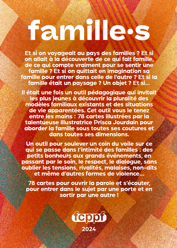 Qu'ont en commun une meute de loup, des personnes qui s'enlacent sur un quai de gare, un vase cassé, une maman surchargée de sacs, une chambre vide, des enfants qui jouent au foot, une mamie qui cuisine avec un enfant, un oiseau qui s'envole d'une cage ? Ce sont autant d'images qui nous invitent à réfléchir et à parler de nos familles, de leur pluralité et leur diversité.